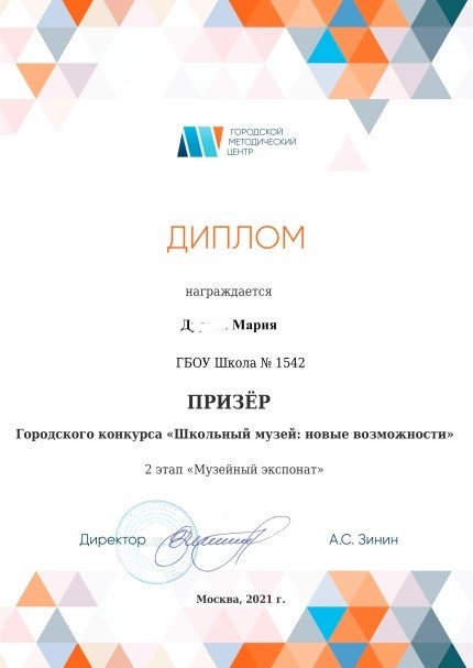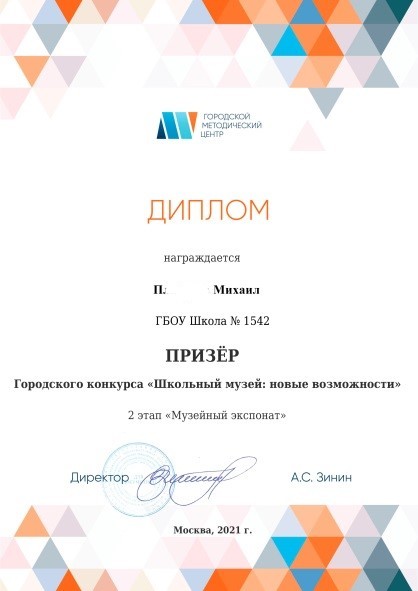 Команда активистов школьного музея «Тепло дома твоего» в составе: Д. Мария, М. Сергей, П. Михаил участвует в городском конкурсе школьных музеев «ШКОЛЬНЫЙ МУЗЕЙ: НОВЫЕ ВОЗМОЖНОСТИ». Во II этапе «МУЗЕЙНЫЙ ЭКСПОНАТ» ребята получили сертификат «ПРИЗЕР». Сердечно поздравляем ПРИЗЕРОВ конкурса и желаем им дальнейших творческих успехов и побед!