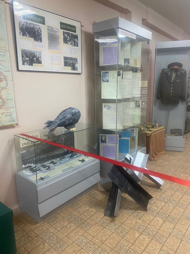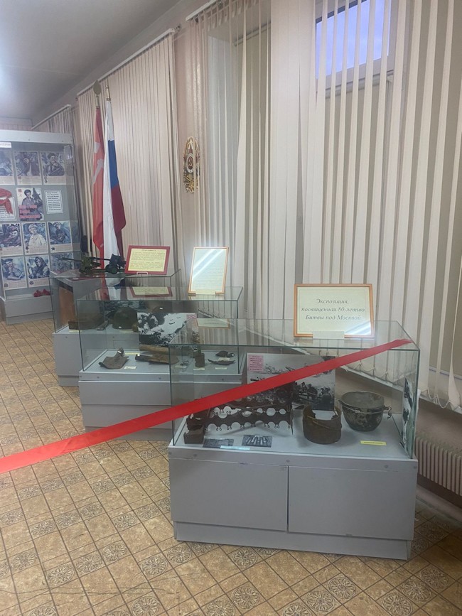 80 лет прошло с тех дней, но земля хранит память о кровопролитных боях. В нашей экспозиции представлены находки, переданные родителями-поисковиками наших учеников в так называемом Вяземском котле. За 11 дней там погибли более миллиона человек, что сравнимо с потерями в блокаду Ленинграда за 872 дня. Оборонительная операция в Вяземском котле закончилась очень трагично. Но именно москвичи-ополченцы и красноармейцы на несколько дней став живым щитом заставили войска вермахта остановиться. И это остановка решила исход битвы за Москву, так как за эти 11 дней успели к Москве подойти эшелоны с войсками с Сибири и Дальнего Востока.