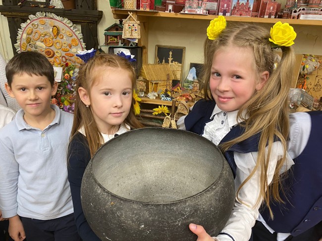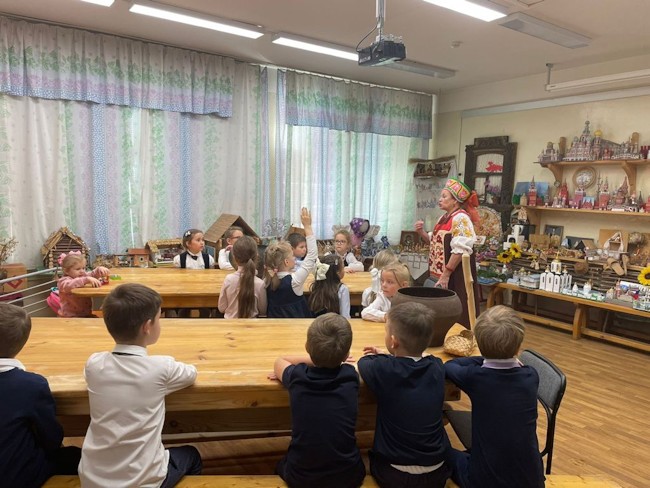Во время экскурсии ребята узнали о внутреннем убранстве русской избы, домашнем укладе крестьянской семьи. Дети познакомились с такими понятиями как «красный угол», «бабий кут», узнали об устройстве и назначении русской печи. В нашем музее ребята могут не только увидеть, но и потрогать руками старинные вещи. Экскурсии по музею, не только включают в себя рассказы о самобытной русской культуре и укладе жизни наших предков, они наполнены устным народным творчеством, русскими народными песнями, которые исполняет школьный ансамбль «Карамель».