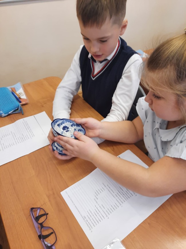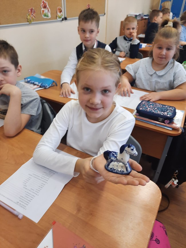 В начальной школе актив школьного музея «Берегиня» провел цикл бесед «Русские промыслы». Ребята рассказывали про старинный промысел - гжель. В нашем музее более 20 экспонатов.