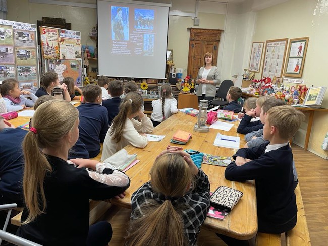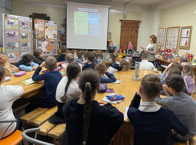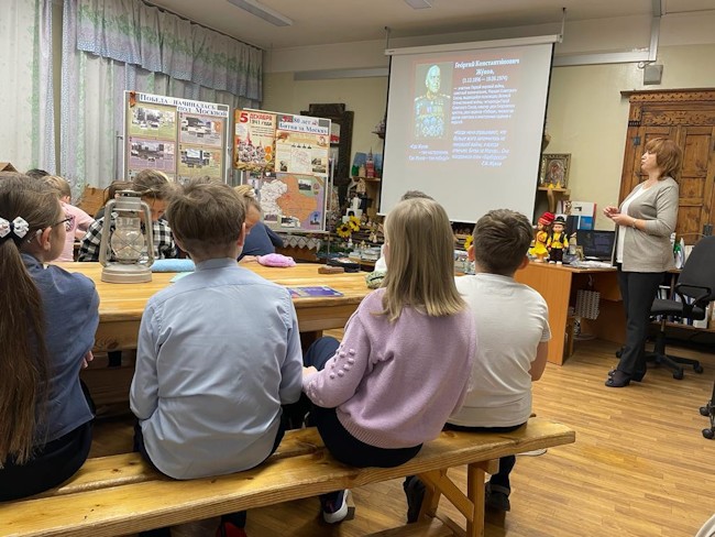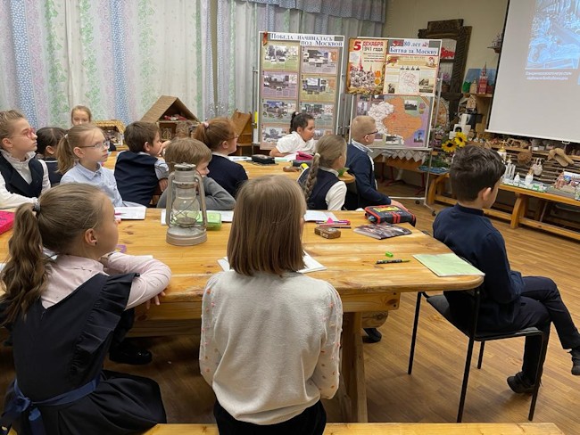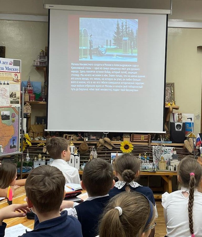 29 ноября в четвёртых классах Школьного корпуса № 1 (пять классов, 125 человек) прошли уроки Памяти «Победа начиналась под Москвой» – совместная деятельность двух педагогов: учителя исторических основ православной культуры Турлюн С.И. в рамках темы «Россия - священная наша держава» и руководителя музея «Наши деды – славные победы» Булавиной Е.Н., урок к памятным датам – Дню начала контрнаступления советских войск под Москвой (1941г.).