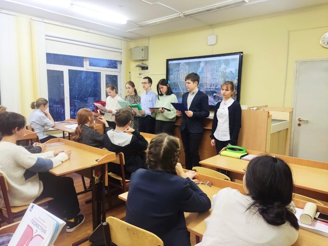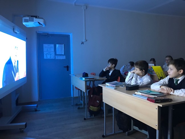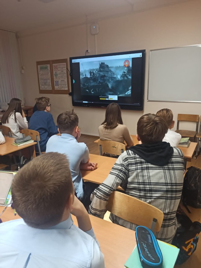 Ну уроках мужества 6 декабря для учащихся был показан фильм, исполнен гимн города-героя Москва.