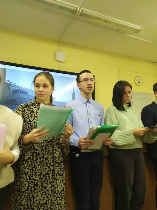 Ребята рассказали о плане наступления на Москву под названием «Тайфун», о подготовке к битве за Москву советскими войсками. Уделили ребята внимание и вопросу об осадном положении Москвы, о помощи союзников. Подробно было изложено контрнаступление советских войск под Москвой. Завершался рассказ о значении битвы за Москву.
