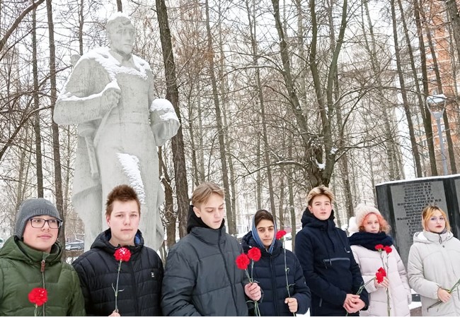Ребята расчистили выпавший снег, с торжественным словом о грандиозности битвы за Москву в переломе всего хода Второй мировой войны выступила учитель, а затем, как капли крови на белом снегу к памятнику легли гвоздики.